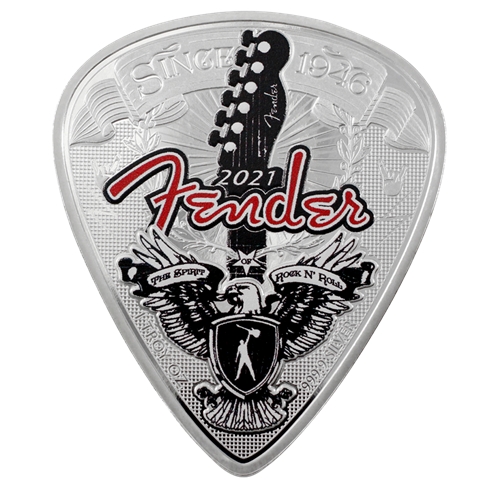 Established in 1946, Fender® has become a cultural icon in its own right and champions THE SPIRIT OF ROCK-N-ROLL® for all music lovers, from young guitarists just learning to play to legendary musicians. For the first time ever, music enthusiasts can own a one-of-a-kind Fender® 1oz pure silver legal tender collectible coin!