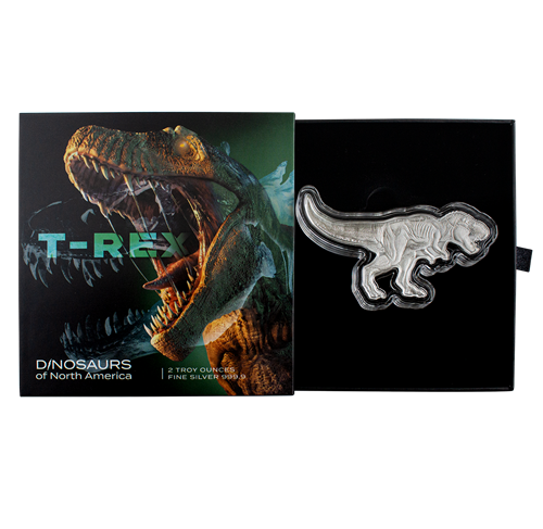 The Tyrannosaurus rex is the first coin in the new Dinosaurs of North America series. A special collectible but not for the faint of heart. Dinosaurs of North America feature some of the most widely known Cretaceous creatures.