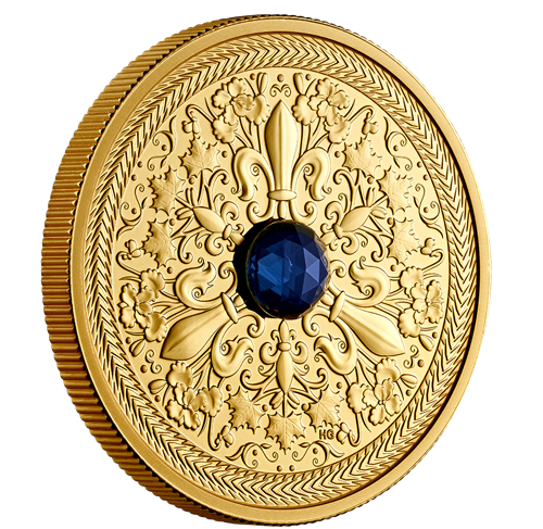 The stunning blue sapphire on this 99.99% pure gold coin is sure to spark joy.