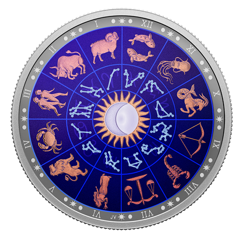2 oz. Pure Silver Glow-in-the-Dark Coin – Signs of the Zodiac
