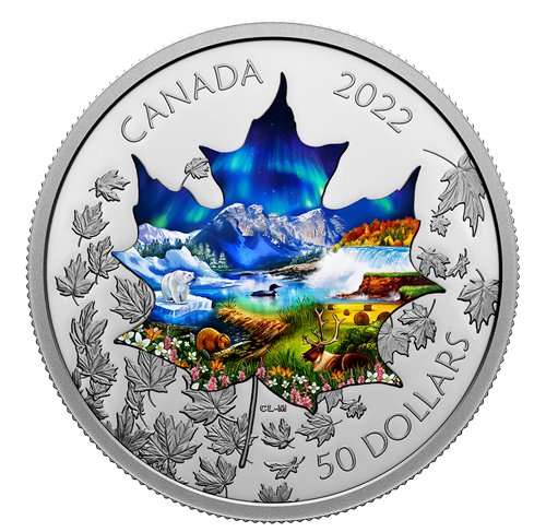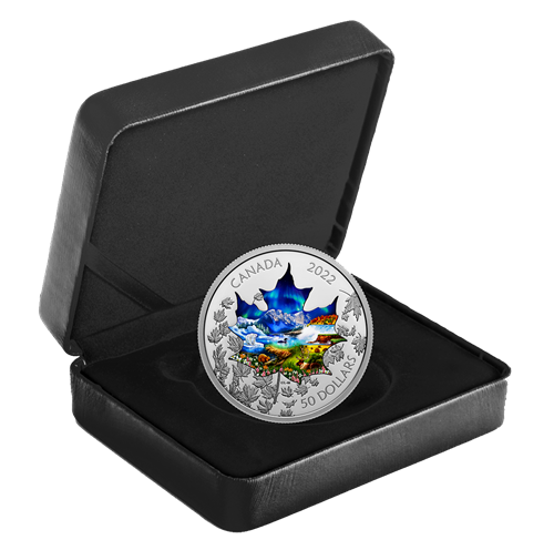 Canada in colour! Gorgeous grasslands, show-stopping shorelines, mighty mountains, and more—all of these breathtaking places exist within our borders, and each contains its own assortment of beautiful flora and fauna. Inspired by our classic circulation coin designs, this 3 oz. coin’s colour-over-engraved portrait celebrates the diversity of our landscapes through the seasons, and it’s all framed by the mighty maple leaf that proudly identifies Canada to the world.