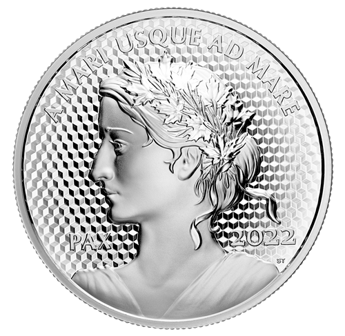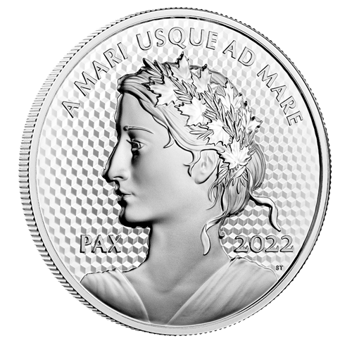 - Five ounces of luminous silver. Your coin features a luminous proof finish to ensure every crisply engraved detail stands out—from the strands of hair to the maple leaves in Lady Peace’s crown.