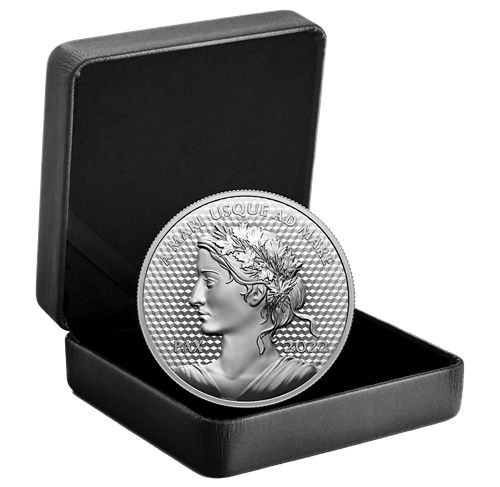 Pride in our peacekeeping heritage is evident on the 2022 Peace Dollar, which is now available in a larger 5 oz. 99.99% pure silver format. Struck in Ultra High Relief (UHR), the 65 mm reverse features a field pattern that pulsates whenever the coin is tilted, while the obverse offers a magnified (non-pulsating) view of the engraved elements that create this optical effect.