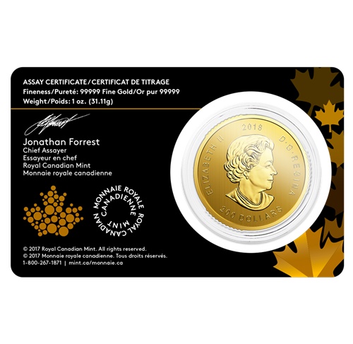 - Highest face value ($200 CAN) of any legal tender 1oz. gold bullion coin.