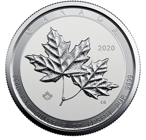 Pièce de 10 $ de 2 oz en argent pur à 99,99 % - Deux feuilles d'érable (pièce d'investissement)