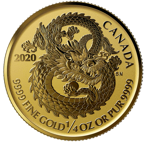 Pièce d’investissement de ¼ oz (10 $) en or pur à 99,99 % – dragon (2020) (pièce d'investissement)